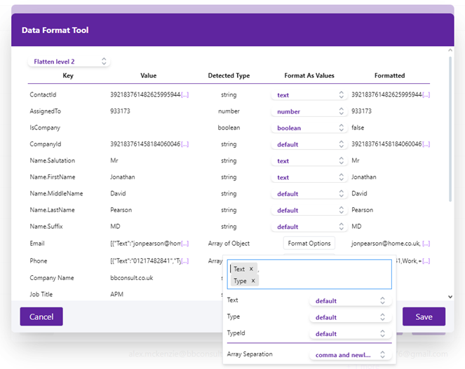 Here the user can format how basic object arrays, phone numbers dates etc. appear in the html template/template editor.